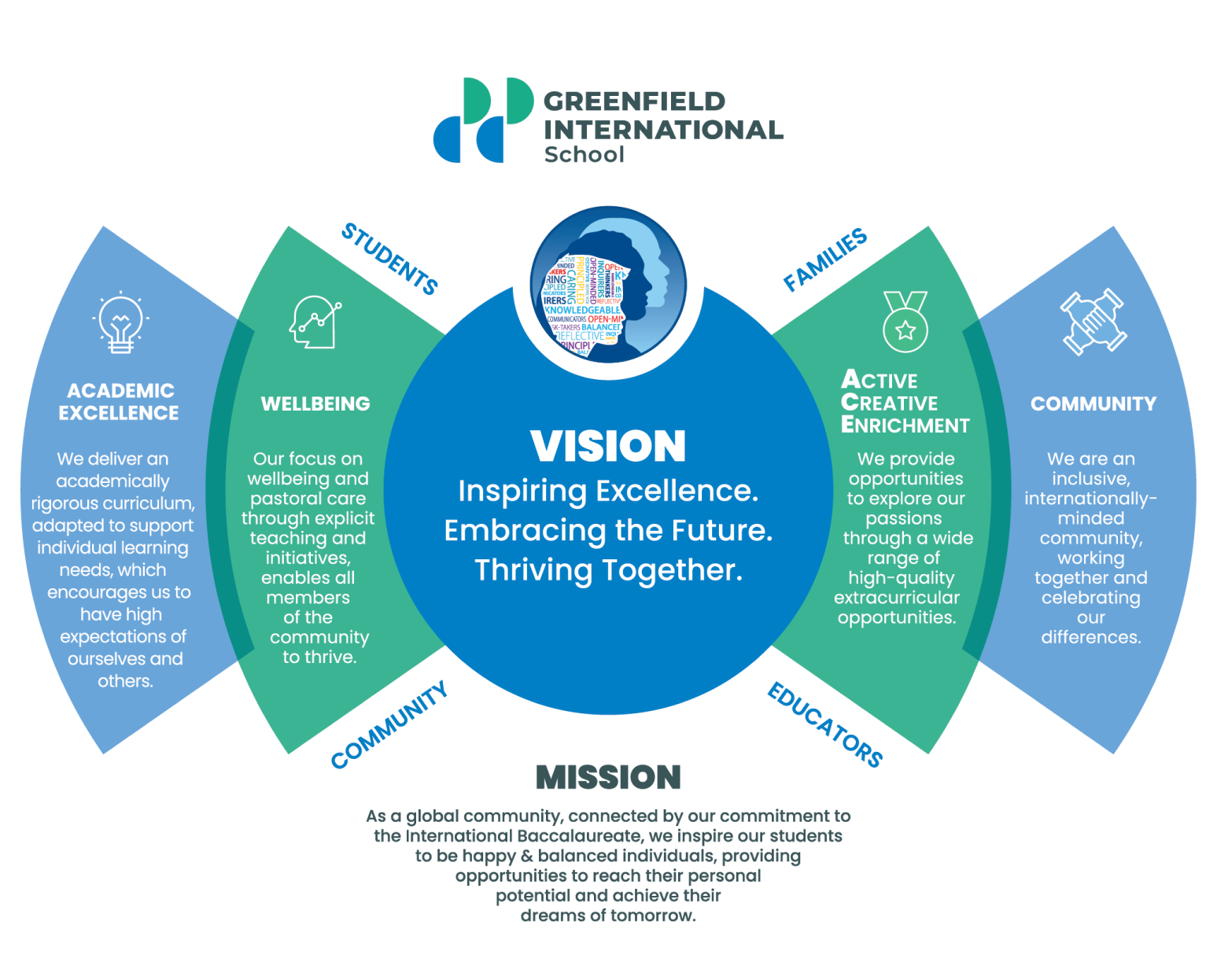 As a global community, connected by our commitment to the International Baccalaureate, we inspire our students to be happy & balanced individuals, providing opportunities to reach their personal potential and achieve their dreams of tomorrow.