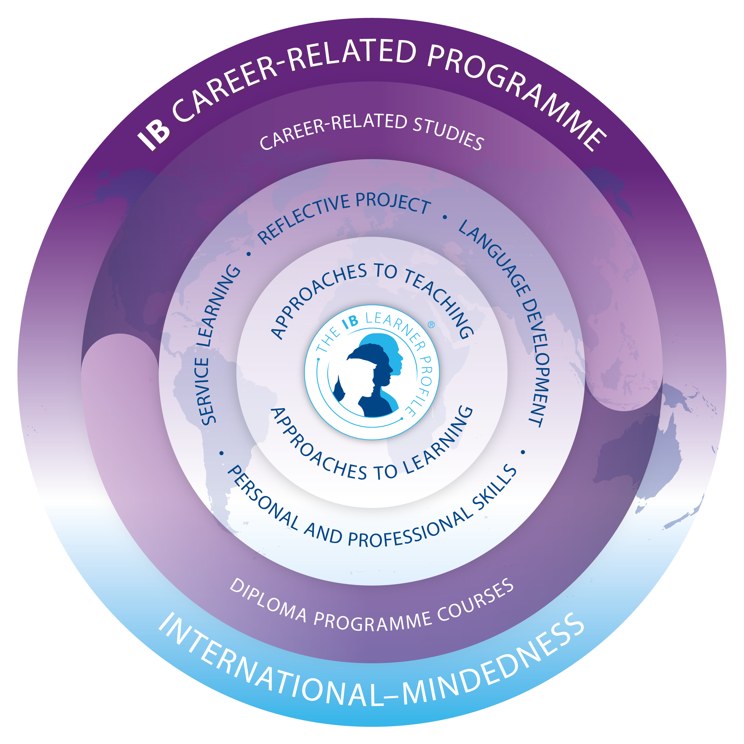 The IB Career-Related Programme (IBCP) framework is built around three interconnected elements: